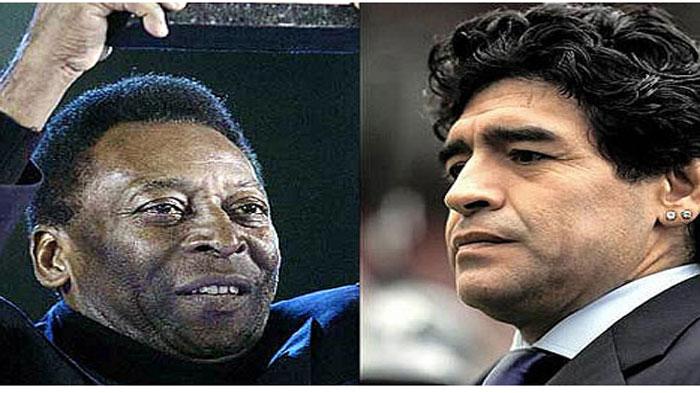 دافع أسطورة كرة القدم الأرجنتيني دييغو مارادونا عن مواطنه ليونيل ميسي نجم هجوم برشلونة الاسباني كما انتقد غريمه التقليدي أسطورة كرة القدم البرازيلي بيليه.