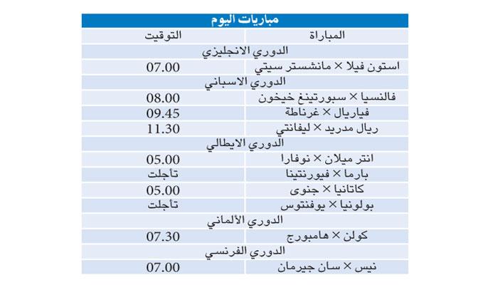 وفي المباريات الأخرى يلعب اليوم اسبانيول أمام سرقسطة، رايو فاليكانو أمام خيتافي، ملقا أمام ريال مايوركا، فالنسيا أمام سبورتينغ خيخون، فيا ريال أمام غرناطة.