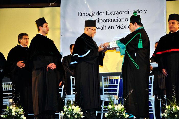 وقال رئيس الجامعة الدكتور ارماندو مارتينز غوميز خلال الحفل ان الجهود الواضحة التي قام بها السفير حيات في الآونة الأخيرة التي أعقبت افتتاح السفارة الكويتية اثرت بشكل كبير وملحوظ في مسيرة العلاقات الثنائية بين الكويت والمكسيك في كافة المجالات.