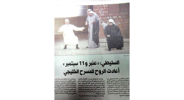 < أكد الفنان القطري غانم السليطي ان هناك حضوراً جماهيرياً كبيراً يشاهد بشغف مسرحيته السياسية الكوميدية السوداء «عنبر و11 سبتمبر» على مسرح الدسمة، وقال السليطي ان الجمهور الكويتي يحتفي يومياً بعروض المسرحية.