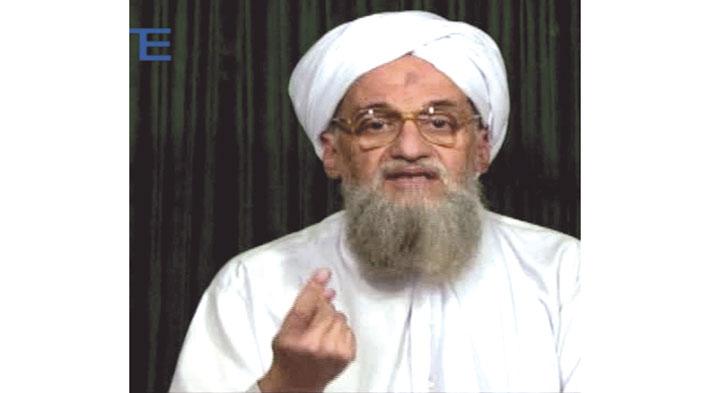 أيمن الظواهري زعيم تنظيم القاعدة في أحدث ظهور مسجل له أمس (ا ب)