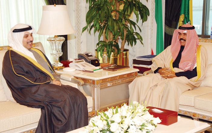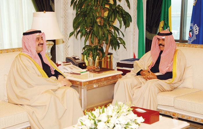 استقبل سمو ولي العهد الشيخ نواف الأحمد الجابر الصباح في ديوانه بقصر السيف صباح امس سمو الشيخ جابر المبارك الحمد الصباح رئيس مجلس الوزراء.
