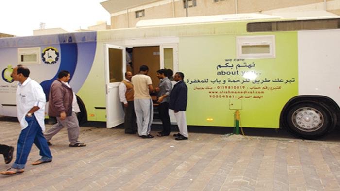 «الرحمة» تفحص 300 عامل وافد مجاناً بمخيمها الطبي المتنقل
