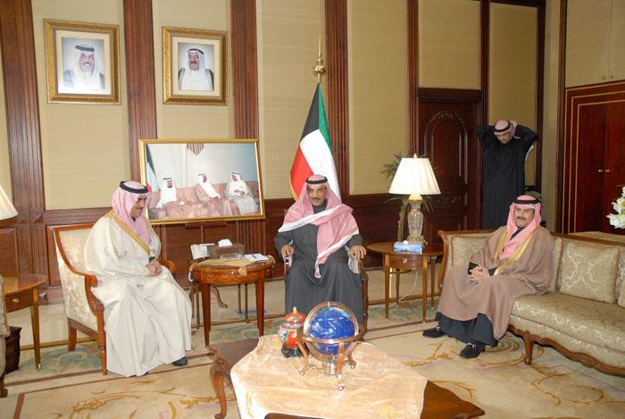 الشيخ صباح الخالد مستقبلاً مدير وكالة الأنباء السعودية بحضور الشيخ مبارك الدعيج