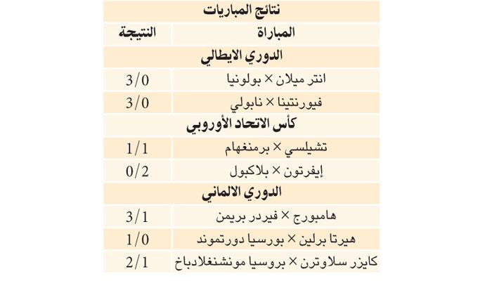 فيما فاز ايفرتون على بلاكبورن 1/2، وبولتون على ميوال 0/2، وليستر سيتي على نوريتش سيتي 1/2.