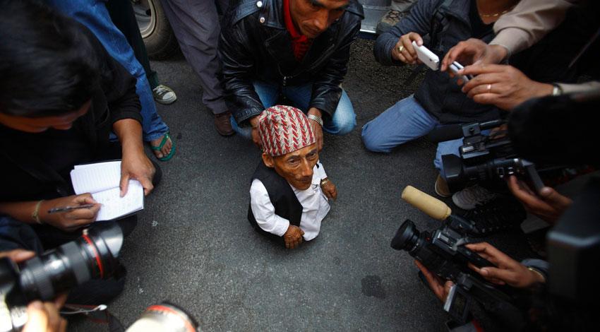 يزعم تشاندرا بغدار والذي يبلغ من العمر 72 عاما بأنه اقصر رجل في العالم ويبلغ طوله 22 انش ، ومن المفترض ان يسجل بغدار كأقصر رجل في العالم في سجلات غينيس للأرقام القياسية في 26 فبراير