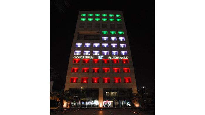 «الخليج للتأمين» تزين مبناها احتفالاً بالأعياد الوطنية