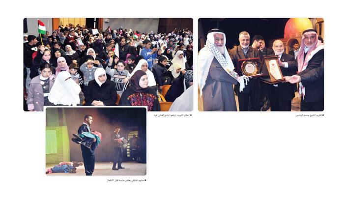 وتضمن الحفل عروضا فنية متنوعة جسدت الواقع في قطاع غزة والمشاريع والمساعدات التي تقدمها دولة الكويت.