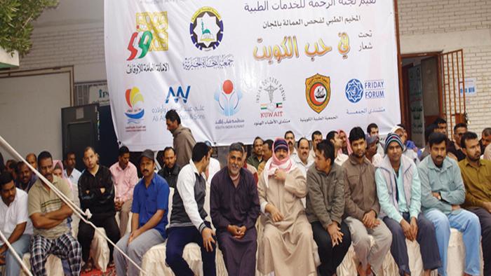 تحت شعار «في حب الكويت» ووسط هطول أمطار الخير التي سقطت على الكويت، ومشاركة منها في احتفالات الكويت بأعيادها الوطنية، أقامت لجنة الرحمة للخدمات الطبية مخيماً طبياً للكشف على العمالة الوافدة للعمالة الوافدة والفقيرة التي تسكن بمنطقة أمغرة مجاناً، بمشاركة 16 طبيبا من جميع التخصصات، وشهد المنتدى اقبالا كثيفا لمختلف الجاليات الوافدة ذات الدخل المحدود.