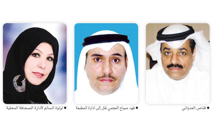 وشملت القرارات كذلك نقل فهد صياح العجمي مدير ادارة الصحافة المحلية للعمل بوظيفة مدير ادارة المطبعة، ونقل لولوة السالم مدير ادارة المطبوعات الاعلامية للعمل بوظيفة مدير ادارة الصحافة المحلية، اضافة الى انهاء ندب فضيلة الموسوي من العمل مدير ادارة البحوث والترجمة وندبها للعمل مدير ادارة المطبوعات الاعلامية.