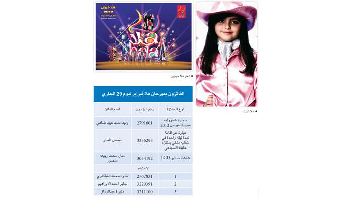 يختتم مهرجان هلا فبراير2012 فعالياته اليوم بحفل غنائي للأطفال للموهبة المتألقة حلا ترك في قاعة المؤتمرات بفندق الموفمبيك بالمنطقة بالحرة.