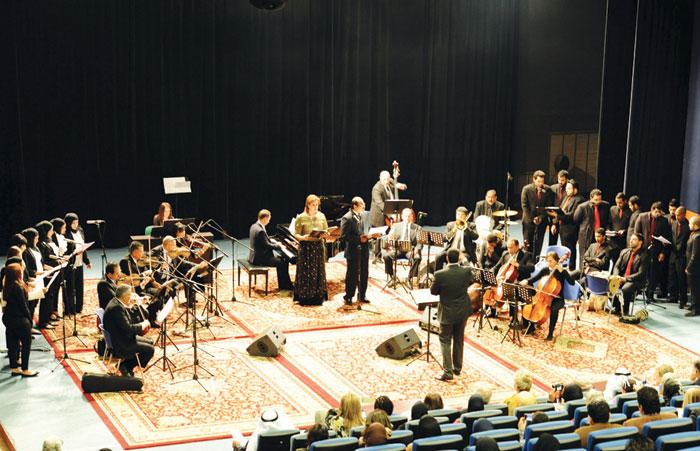 طلبة وأساتذة الموسيقية في إحدى الفقرات
