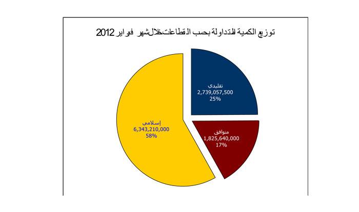 وكذلك استحوذت الأسهم الاسلامية على نسبة %51 من اجمالي سيولة السوق خلال الشهر الماضي مقابل %25 للأسهم التقليدية و%24 للأسهم المتوافقة مع الشريعة، وارتفعت قيمة تداولات الأسهم الاسلامية بنسبة %58 لتبلغ أكثر من 440 مليون دينار مقابل ارتفاع قيمة الأسهم المتوافقة مع الشريعة بنسبة اقل كانت %47 واجمالي السوق بنسبة %42.9، وجاءت مثل تلك التوجهات للمتداولين بعد ان ارتفعت أسعار أسهم صغرى بنسب تجاوزت %100 خلال فترة قصيرة لتتوجه سيولة اضافية الى أسهم أخرى وترفع أسعارها دون اي تغيرات حقيقية سواء على بيئتها التشغيلية أو بياناتها المالية، واستفادت بعض الأسهم المعلنة عن نتائجها المالية من بعض التغيرات الايجابية في بياناتها ولكنها كانت محدودة عددا.