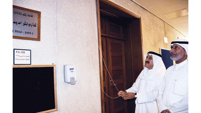 دشنت كلية العلوم الاجتماعية بجامعة الكويت قاعة استاذ الجغرافيا بجامعة الكويت المرحوم د.أحمد الميال في مبنى كلية العلوم الاجتماعية، وذلك بحضور عميد كلية العلوم الاجتماعية د.عبدالرضا أسيري، والعمداء المساعدين ورؤساء الأقسام العلمية بالكلية وأسرة الفقيد.
