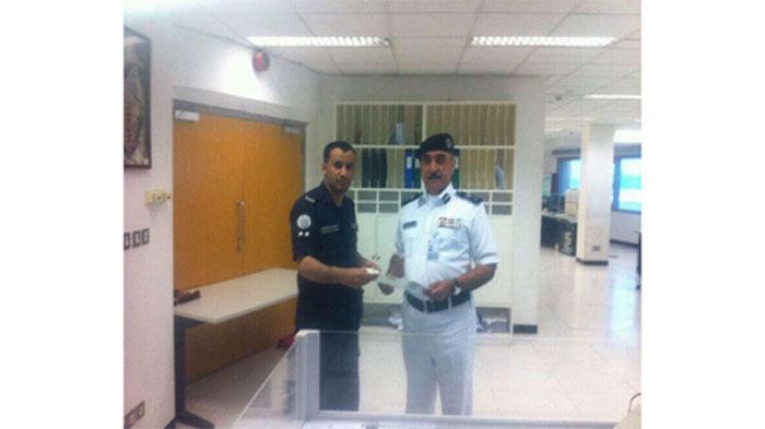 كرم وكيل وزارة الداخلية المساعد لشؤون امن الحدود اللواء الشيخ محمد اليوسف الصباح بحضور رئيس قسم البلاغات الرائد ركن بحري الشيخ مبارك علي الصباح وكيل اول ضباط ارشيد علي موسى الرشيدي تقديرا لجهوده المبذولة في الربط بأجهزة الاتصال الخاصة بالادارة العامة لشرطة النجدة وزوارق الهيئة العامة لشؤون الزراعة والثروة السمكية ودوريات الادارة العامة لخفر السواحل، والذي ادى الى سرعة وتنسيق عملية ضبط طراد هارب.