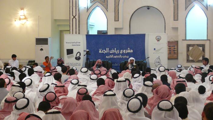 أكثر من ألف مصل امتلأ بهم مسجد جابر العلي في المحاضرة الجماهيرية التي تحدث فيها الشيخ الدكتور صالح المغامسي امام مسجد قباء بالمدينة المنورة عن الرسول صلى الله عليه وسلم في اطار محاضرات مبرة طريق الايمان ومشروع رياض الجنة بالتعاون مع وزارة الأوقاف وادارة مساجد حولي تحت شعار (وكأنك تراه) حيث تحدث الشيخ المغامسي عن النبي وكأنك تراه عابداً.