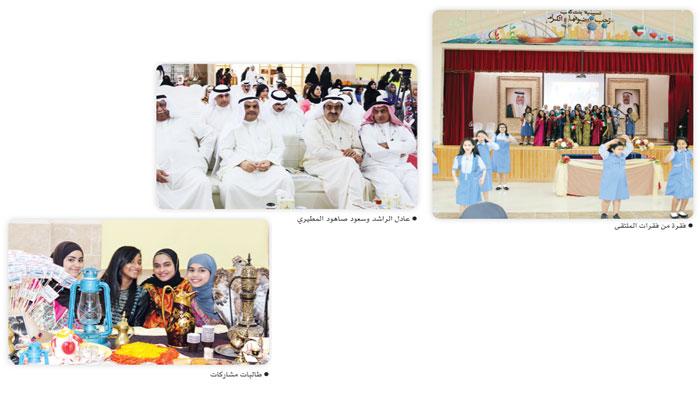 ثم بدأت الفعاليات التي جسدت لوحات تراثية من الماضي مثل اليلوه وأدتها طالبات المدرسة مرتديات الزي الكويتي التراثي ومن ثم كرم عادل الراشد وسعود صاهود المطيري الطالبات المشاركات في الفقرات وقام الحضور بالتجول في معرض تراثي يشع بعبق الماضي والحاضر والمستقبل لدولة الكويت.