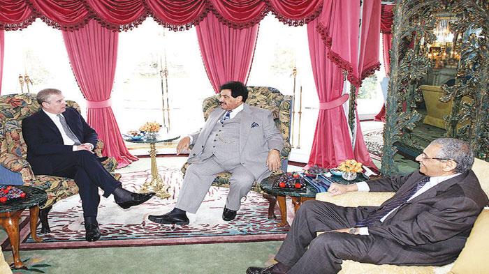 سمو الشيخ ناصر المحمد اثناء لقائه الأمير اندرو بحضور السفير خالد الدويسان