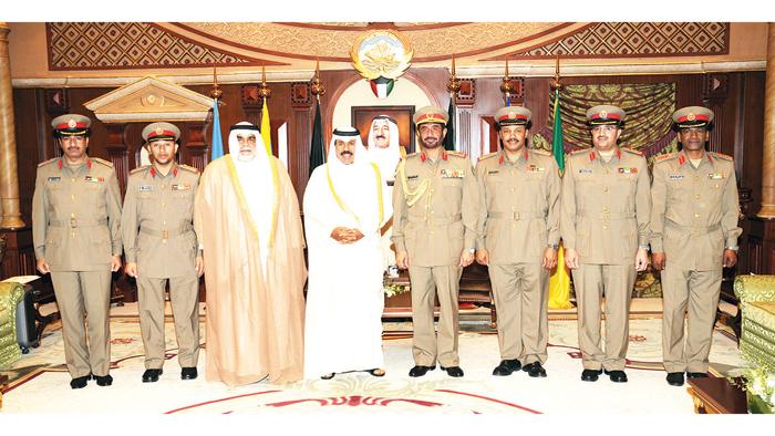 سمو ولي العهد مستقبلاً الشيخ أحمد الخالد وضباط الجيش المرقين إلى رتبهم الجديدة
