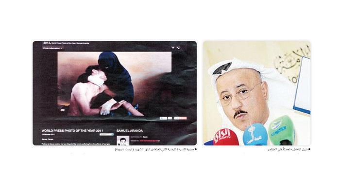 نبيل الفضل متحدثاً في المؤتمر - صورة السيدة اليمنية التي تحتضن ابنها الشهيد (ليست سورية)