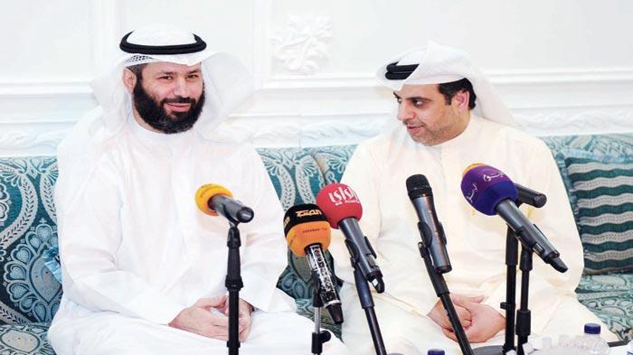 النائب فيصل المسلم يتحدث في الندوة وبجانبه ماضي الخميس