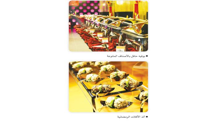 فمع ظهور الهلال الجديد معلناً بداية شهر رمضان الكريم، تبدأ في الوقت نفسه مهمة ممتعة للطهاة العاملين في «زافران» تتمثل في اعداد وتحضير طعام الافطار الشهي يومياً.ويمكن لضيوف ورواد المطعم الاستمتاع بقائمة رائعة لبوفيه الافطار تتضمن تشكيلة متنوعة من الأطباق الساخنة والباردة اللذيذة، والمقبلات، وأنواع الشوربة، والسّلطات الطازجة، وتشكيلة متنوعة من أشهى الحلويات، الى جانب محطات للطهي المباشر أمام الضيوف، مع تقديم المشروبات المتنوعة بما فيها العصائر المرتبطة بشهر رمضان، مع الشاي والقهوة.