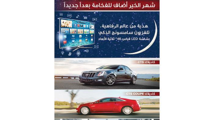 لأن الفخامة اختيار لعشاق الذوق الرفيع، فلا يمكن للهدية الا ان تكون فاخرة وتليق بعشاق كاديلاك. هذه هي الرؤية التي تلهم شركة يوسف أحمد الغانم وأولاده، الوكيل الحصري لسيارات كاديلاك في الكويت، في كل مرة يقومون فيها بابتكار عروض خاصة لتقديمها لنخبة عملائهم، وخاصةً عندما يكون شهر رمضان الكريم هو المناسبة التي تستحق مزيداً من الكرم والترحيب والتكريم. وبذلك فان كاديلاك، ووكيلها الحصري في الكويت يكونان قد قدما التهنئة الأجمل بقدوم الشهر المبارك.