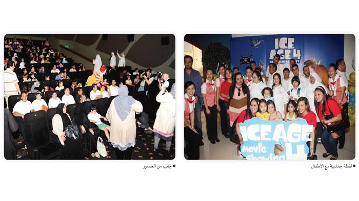 قامت سلسلة مطاعم ماكدونالدز بتنظيم حفلين لحضور فيلم «أيس أيج: كونتيننتال دريفت 4» في مارينا مول في مساء يوم الثلاثاء الماضي بمساعدة مجموعة شباب الخير، شهد العرض الاول حضور حاشد من منظمات الافال المحلية التي تشمل مركز الخرافي لأنشطة الاطفال المعاقين، وفريق Abeer2 التطوعي لذوي الاعاقة الذهنية، بالاضافة الى العديد من المؤسسات والمنظمات لذوي الاحتياجات الخاصة من جميع ارجاء دولة الكويت. كما حضر العرض بعض العائلات والصحافيين والفائزين في انشطة ومسابقات ماكدونالدز السابقة، وكان الحفل الثاني مخصصا لموظفي وطاقم ماكدونالدز وافراد اسرتهم.