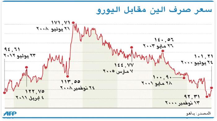 اليورو إلى أدنى مستوى في 11 عاماً أمام الين والبورصات تتهاوى