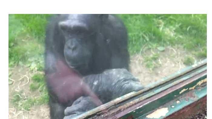 كما يظهر في الشريط صوت شخص وهو يضحك ويقول: "إنه يريدنا أن نفتح له الباب"، فيما انصب تركيز الشمبانزي على محاولة توصيل مطلبه للناس، وهو ينظر إليهم.