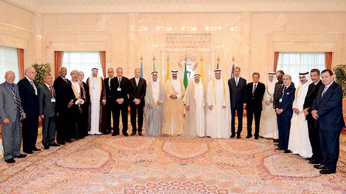 سمو الأمير وسمو ولي العهد يتوسطان محافظي المصارف المركزية ومؤسسات النقد العربي