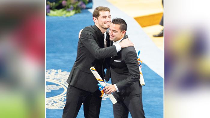 سلم ولي العهد الاسباني فيليبي دي بورون لاعبي كرة القدم الاسبانية ايكر كاسياس وزافي هيرنانديز جائزة (امير استورياس) الدولية للرياضة لعام 2012 التي تعد ارفع الجوائز السنوية التي تمنحها اسبانيا في هذا المجال.