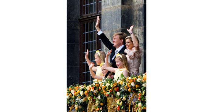 وتجمع الآلاف في ميدان دام في أمستردام منذ الصباح الباكر في انتظار رؤية الملك والملكة الجديدين عند خروجهما الى شرفة القصر الملكي.