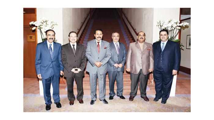 سمو ولي العهد والشيخ مشعل الأحمد والسفير مساعد الهارون