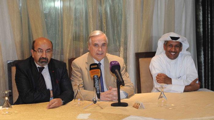 جين ماري بين ناصر الهيفي وإدريس الشاطر أثناء المؤتمر الصحافي