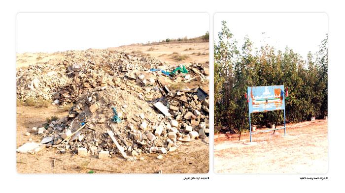 وبالعودة الى عملية القتل الممنهج الذي تتعرض له المنطقة فقد عمد بعض المقاولين ممن يقومون بعملية بناء وترميم الشاليهات الى رمي كميات كبيرة من الأنقاض التي تشمل المواد الاسمنتية والأسفلت وغيرها من المواد المستخدمة في السباكة وأعمال الصباغة، بالاضافة الى كميات أخرى من المواد غير القابلة للتحلل لفترة طويلة من البلاستيك والمطاط المقوى وغيرها وكل ذلك يحدث امام اعين مركز بلدية الكويت التابع للمنطقة والقريب جداً مما يحدث حتى اصبحت مثالاً للدمار البيئي المتعمد.