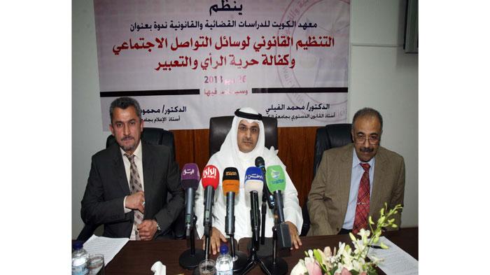 أكد الخبير الدستوري الدكتور محمد الفيلي خلال ندوة «التنظيم القانوني ووسائل التواصل الاجتماعي وكفالة حرية التعبير عن الرأي» بمعهد الكويت للدراسات القضائية والقانونية بحضور عدد من المستشارين والقانونيين أهمية حرية التعبير للفرد فهي من الحريات ذات الطابع الفردي، ومن الجيل الأول للحريات العامة، وبدونها لن يشعر الفرد بأنه قادر على المشاركة الايجابية في حياة الجماعة.