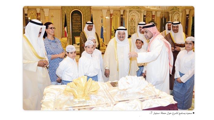 فقد استقبل سموه رئيسة مركز العمل التطوعي الشيخة امثال الاحمد الجابر الصباح وفريق العمل التطوعي من اعضاء فريق الغوص لحملة (سنيار 7) حيث اعرب سموه عن اعتزازه وتقديره لما يقدمه القائمون على الحملة من دور وطني فعال في الحفاظ على البيئة البحرية مؤكدا سموه على ضرورة تضافر الجهود لحمايتها واستكمال هذه المسيرة المشرفة للكويت التي تمثل نموذجا للعمل التطوعي وتجسد حب الوطن.