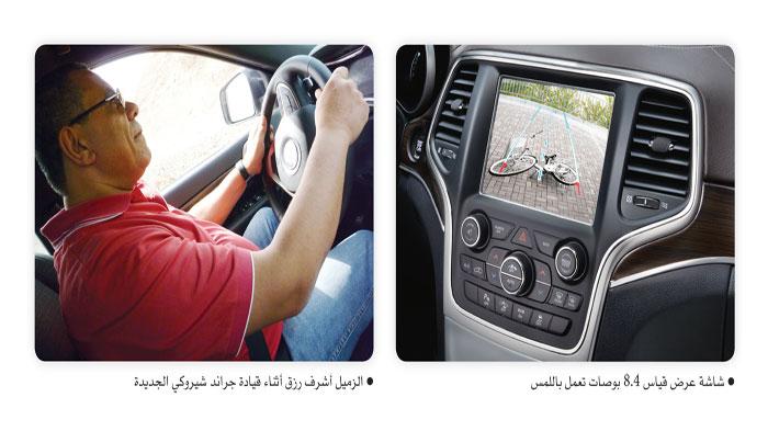 اللحظات الاولى لتجربة قيادة السيارة جيب جراند شيروكي 2014 بدأت من امام صالة عرض الفطيم الوكيل الحصري للسيارة في دبي، باتجاه منتجع المها الفخم، وخلال المسافة التي استغرقت نحو ساعة على طريق معبد اظهرت السيارة قدرتها على التجوال بالاناقة والمناورة وخوض المنحنيات برشاقة، خلافاً لظني ان وزنها الذي يصل الى 2.336 كيلو غراماً قد يحول دون ذلك، وتتجلى هذه الرشاقة في قدرتها على التسارع من الصفر الى 100 كيلو/ ساعة خلال اقل من 4.8 ثانية.