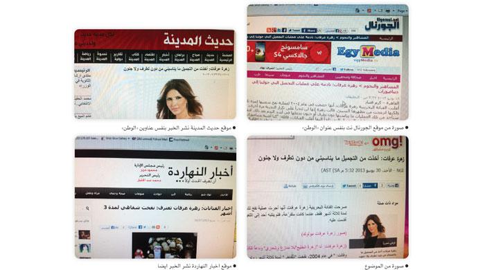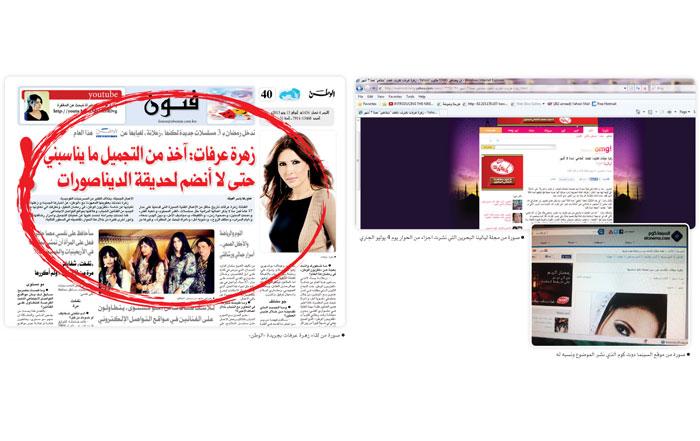 ومدخلي هذا جاء بعد ان فوجئت بأكثر من موقع ومنتدى على شبكة الانترنت نسبوا لأنفسهم لقاءً لي على صفحات «الوطن» اجريته مع النجمة البحرينية زهرة عرفات ونشر بالجريدة يوم 13 يونيو الماضي.