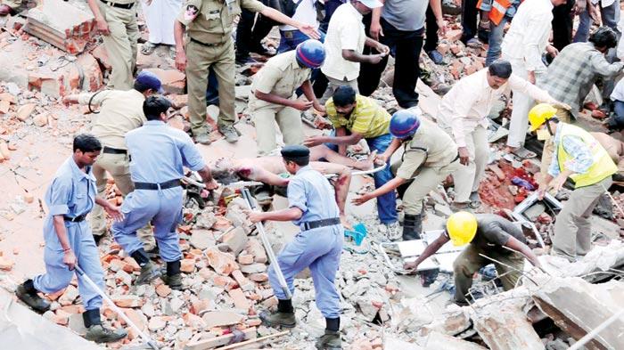 وانهار عدد من المباني في الهند في الأشهر الأخيرة معظمها سكني في العاصمة الاقتصادية بومباي، كان احدها في ابريل وأدى الى مقتل 74 شخصاً.