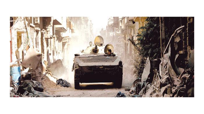 دبابة تابعة للجيش السوري تقطع حياً تحوّل إلى أطلال في الخالدية بحمص (إ. بي. أ)