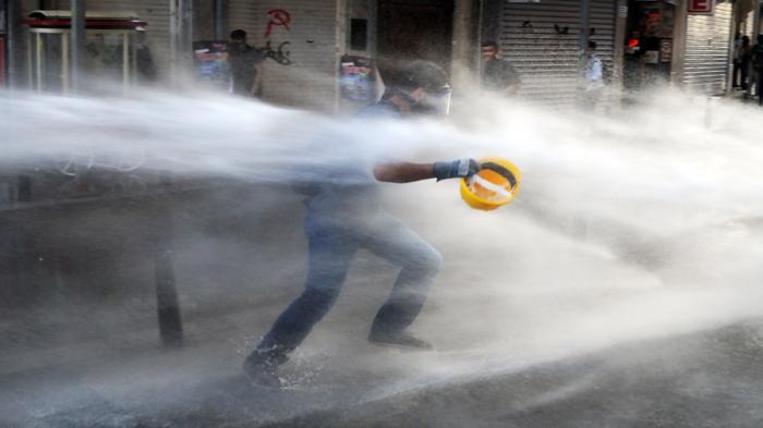 (رويترز) - اطلقت الشرطة التركية مدافع المياه والغاز المسيل للدموع اليوم السبت لتفريق مئات المحتجين مع احتشاد مجموعات للقيام بمسيرة الي متنزه غازي بمدينة اسطنبول والذي كان مركزا لاسابيع من المظاهرات المناهضة للحكومة.