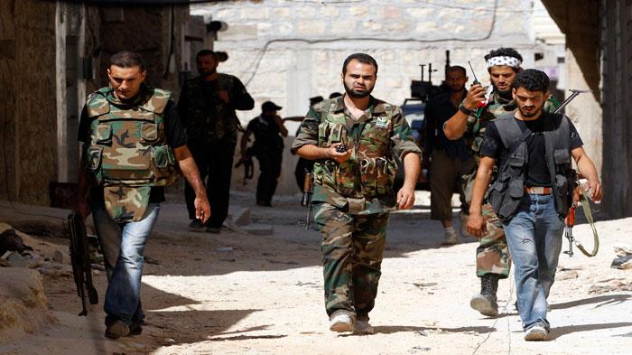 مقاتلون بالجيش الحر في أحد الشوارع شمالي حلب (رويترز)