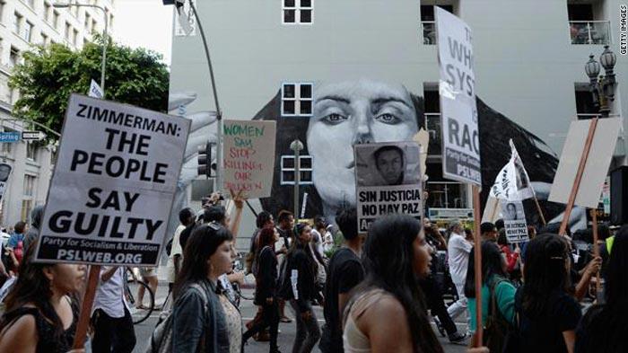 ميامي – د ب أ: انضم الالاف لمسيرات تحمل شعار «العدالة لترايفون» في الولايات المتحدة للمطالبة بأن يواجه جورج زيمرمان اتهامات بانتهاك الحقوق المدنية الاتحادية، بعد أسبوع من تبرئة لجنة محلفين ساحته من مقتل المراهق الأسود الأعزل ترايفون مارتن.