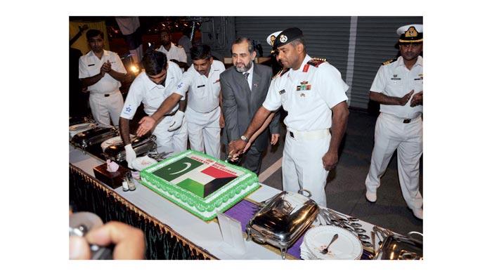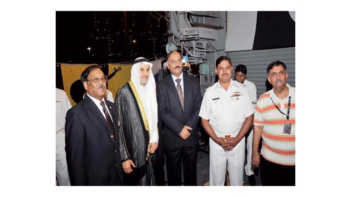 السفير ابرار حسين ومبارك المطوع على متن السفينة الباكستانية