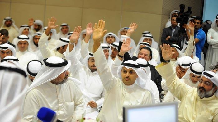حلت امس المادة 241 في قانون الشركات الجديد والتي تنص على انه «يراس اجتماع الجمعية العامة رئيس مجلس الادارة او نائبه او من ينتدبه مجلس الادارة لهذا الغرض او من تنتخبه الجمعية العامة من المساهمين او من ينوب عنهم» ضيفا على الجمعية العمومية لمجموعة الامتياز للاستثمار حيث مكنت المساهم خالد سلطان بن عيسى والذي يمتلك حصة تبلغ %5.26 من التقدم بطلب الى وزارة التجارة والصناعة بتغيير من تراس الجمعية العمومية للشركة وهو الامر الذي دفع بدر الشمري ممثل الوزارة في العمومية الى اجراء تصويت على المقترح حيث تمت الموافقة عليه بنسبة %49.9 من اجمالي حضور المساهمين والبالغ %90.19.