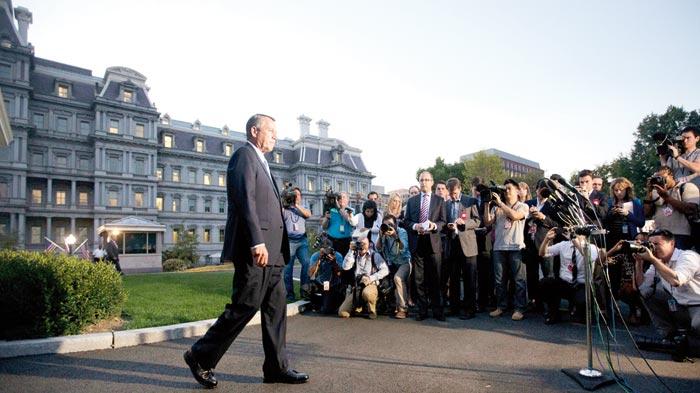 جون بوينر يتجه للحديث الى الصحافة بعد لقائه مع الرئيس أوباما في البيت الأبيض بواشنطن (ا ب)