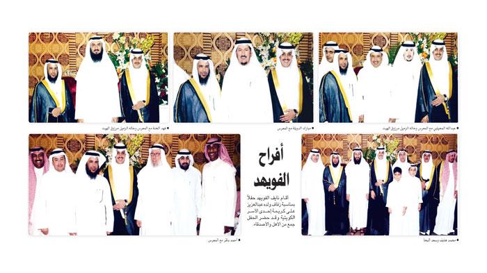 أقام نايف الفويهد حفلاً بمناسبة زفاف ولده عبدالعزيز على كريمة إحدى الأسر الكويتية وقد حضر الحفل جمع من الأهل والأصدقاء.