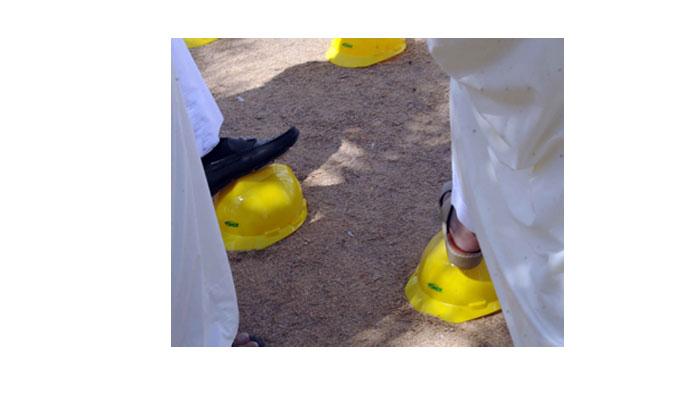 - تم وضع الخوذات على الارض تعبيراً عن رفضهم سياسة الشركة وتأكيدا منهم على السير في اتجاه الاضراب إذا لم يحصلوا على حقوقهم المشروعة.